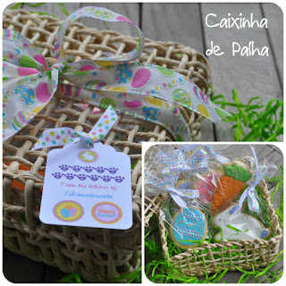 4 biscoitos decorados a escolher, embrulhados um a um, na Caixinha de Palha.